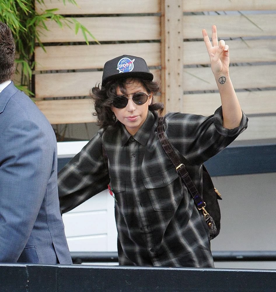 Lady Gaga was seen arriving at ITV Studios in London earlier today. She was wearing the "Dope" hat. Check out the photos below!